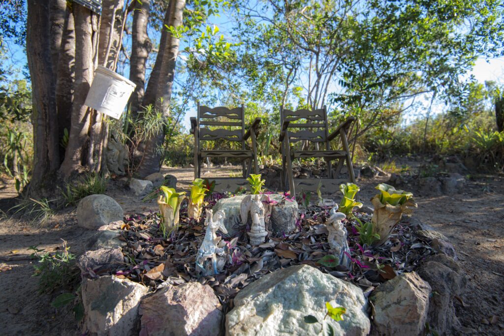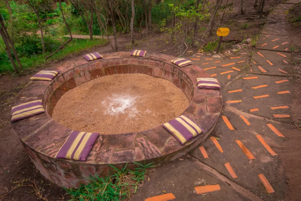 Com muito respeito e baseado nos ensinamentos indígenas, construímos a sauna de pedra (sauna seca), um espaço de purificação ou relaxamento, através do calor das pedras aquecidas e chá das ervas.