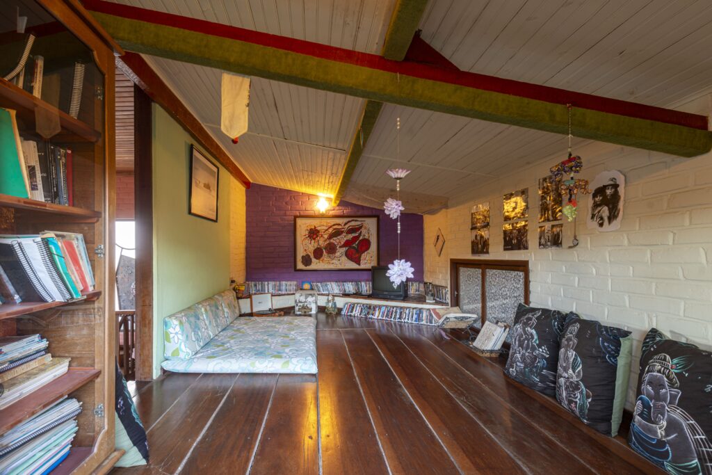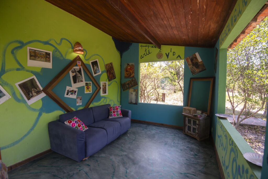 Uma salinha aberta de descanso, de bate papos, de desenhar…descanso e arte.